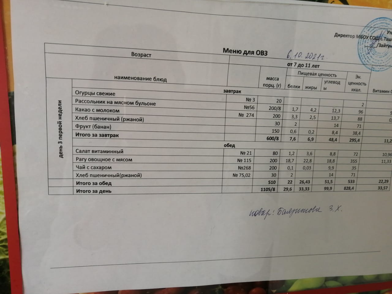 (МЕНЮ за 05.10.2021)